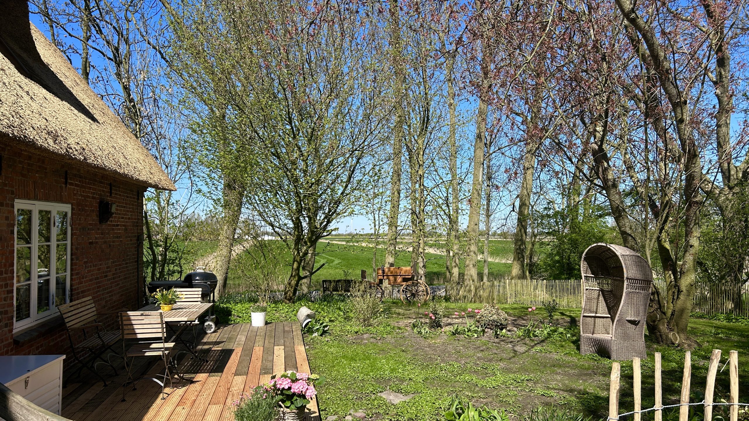 „Wir haben einen ruhigen Ort in der Natur gesucht, von dem aus man aber auch leicht Ausflüge unternehmen kann und sind mit der Warft Simmerdeis mehr als fündig geworden. Die Ferienwohnung wurde passend zum Reet-Haus mit viel Liebe zum Detail eingerichtet. Der Garten war ein traumhaftes Paradies, in dem man ungestört essen, verweilen und staunen konnte. Alles war sehr gut gepflegt und trotz 3 Ferienwohnungen in einem Haus auch sehr diskret und ruhig. Absolut empfehlenswert und jederzeit gern wieder!“